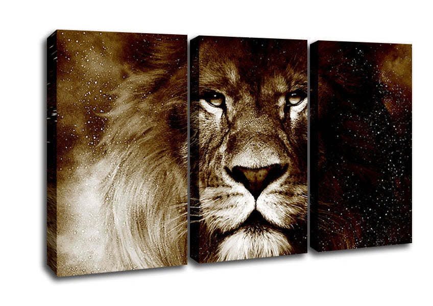 Lions Pride 3 Panel Canvas Print handmade in the UK. Stretched over a 2 inch thick wooden box frame, ready to hang on your wall.