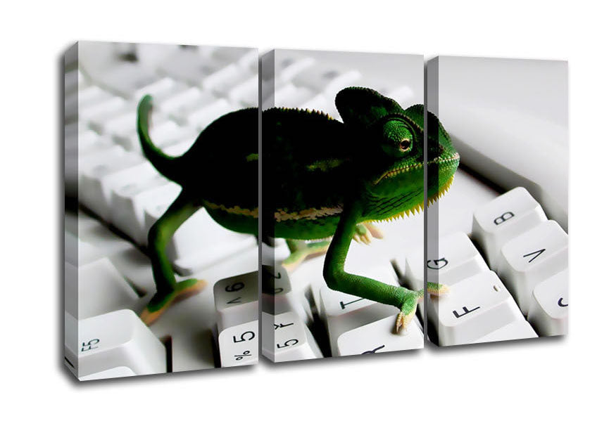 Lizard Keyboard 3 Panel Canvas Print handmade in the UK. Stretched over a 2 inch thick wooden box frame, ready to hang on your wall.