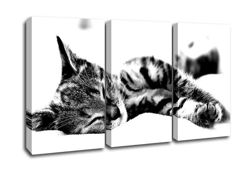 Nap Time Cat 3 Panel Canvas Print handmade in the UK. Stretched over a 2 inch thick wooden box frame, ready to hang on your wall.