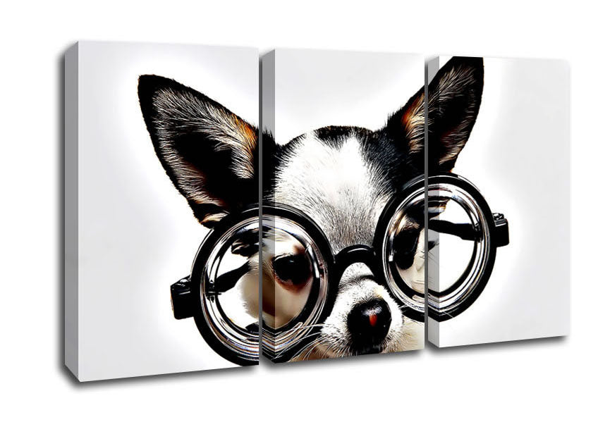 Nerd Dog 3 Panel Canvas Print handmade in the UK. Stretched over a 2 inch thick wooden box frame, ready to hang on your wall.