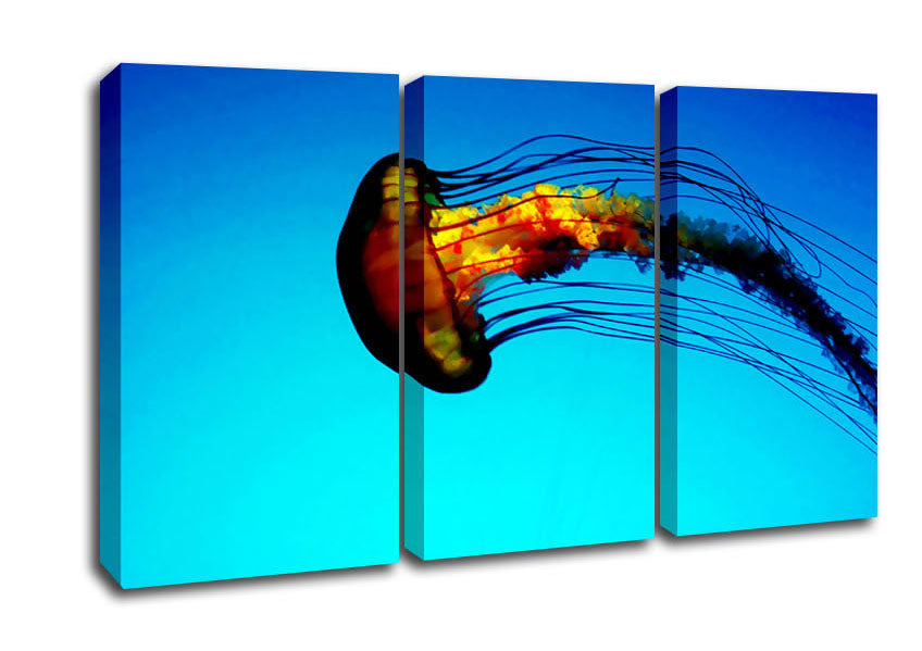 Ocean Jellyfish 3 Panel Canvas Print handmade in the UK. Stretched over a 2 inch thick wooden box frame, ready to hang on your wall.