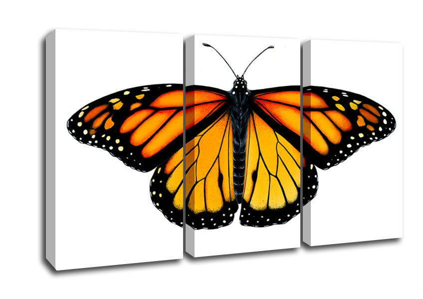 Orange Butterfly Wings 3 Panel Canvas Print handmade in the UK. Stretched over a 2 inch thick wooden box frame, ready to hang on your wall.