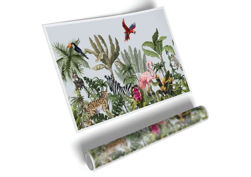 Jungle Paradise Animals Poster printed on high quality canvas paper, ready to display.