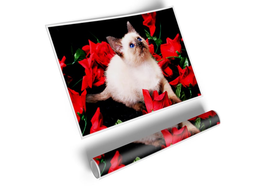 Kitten Roses Poster printed on high quality canvas paper, ready to display.