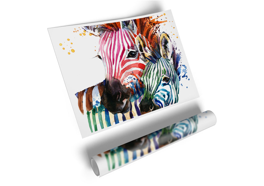 Multicoloured Rainbow Zebra Poster printed on high quality canvas paper, ready to display.