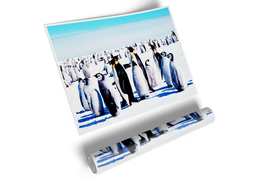 Penguin Meeting Place Poster printed on high quality canvas paper, ready to display.