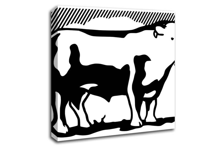 Cow B n W Square Canvas Print handmade in the UK. Stretched over a 2 inch thick wooden box frame, ready to hang on your wall.