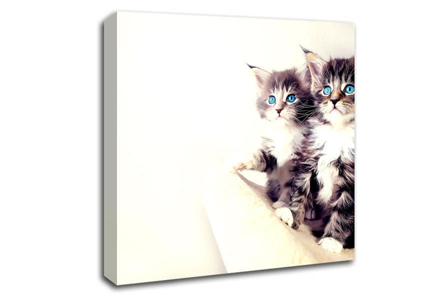 Cute Kittens Square Canvas Print handmade in the UK. Stretched over a 2 inch thick wooden box frame, ready to hang on your wall.