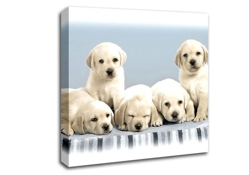 Cute Puppies Square Canvas Print handmade in the UK. Stretched over a 2 inch thick wooden box frame, ready to hang on your wall.