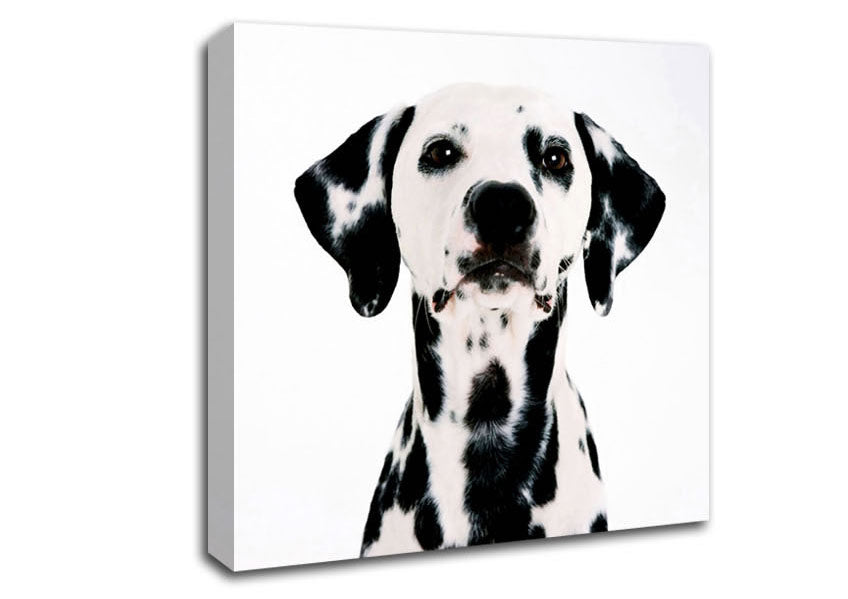 Dalmatian Beauty Square Canvas Print handmade in the UK. Stretched over a 2 inch thick wooden box frame, ready to hang on your wall.