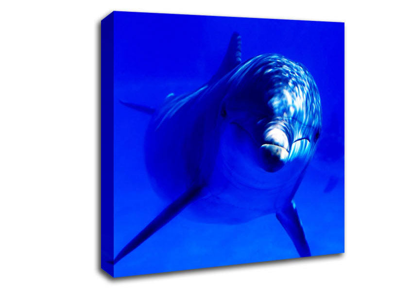 Dolphins Curiosity Square Canvas Print handmade in the UK. Stretched over a 2 inch thick wooden box frame, ready to hang on your wall.
