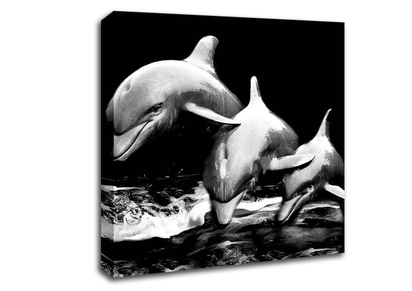 Dolphins Square Canvas Print handmade in the UK. Stretched over a 2 inch thick wooden box frame, ready to hang on your wall.