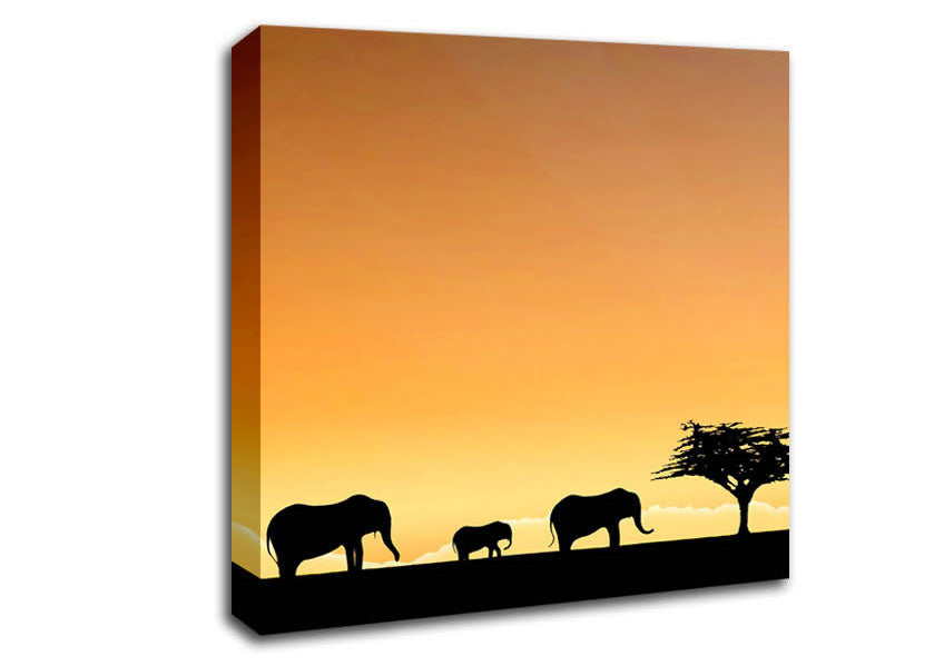 Elephant Paradise Square Canvas Print handmade in the UK. Stretched over a 2 inch thick wooden box frame, ready to hang on your wall.