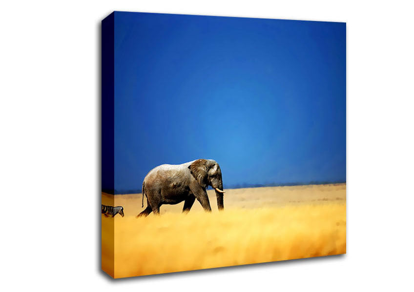 Elephant Safari Square Canvas Print handmade in the UK. Stretched over a 2 inch thick wooden box frame, ready to hang on your wall.