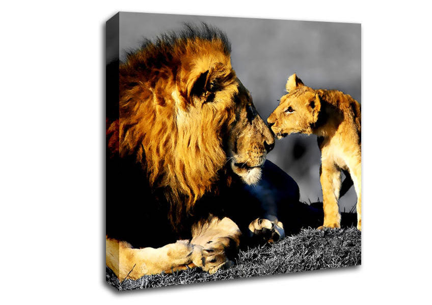 Lions Family Pride Square Canvas Print handmade in the UK. Stretched over a 2 inch thick wooden box frame, ready to hang on your wall.