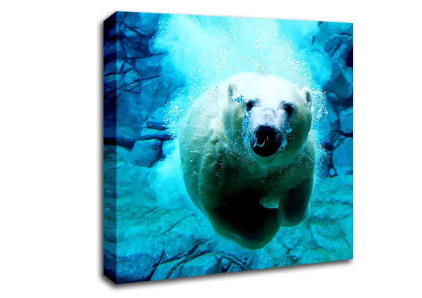 Polar Bear Ocean Square Canvas Print handmade in the UK. Stretched over a 2 inch thick wooden box frame, ready to hang on your wall.