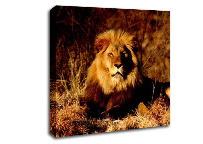 Proud African Lion Square Canvas Print handmade in the UK. Stretched over a 2 inch thick wooden box frame, ready to hang on your wall.