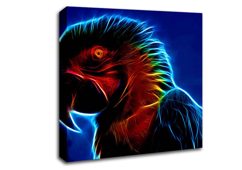 Rainbow Parrot Square Canvas Print handmade in the UK. Stretched over a 2 inch thick wooden box frame, ready to hang on your wall.