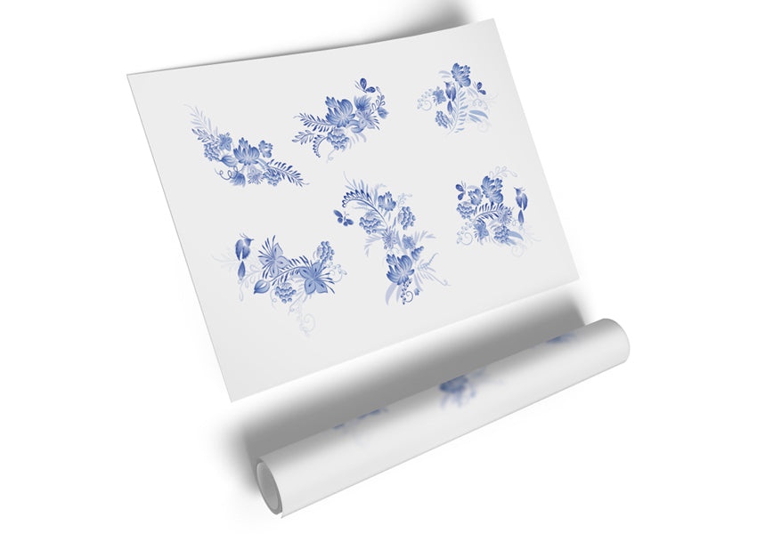 Blue Flowers On White Poster printed on high quality canvas paper, ready to display.