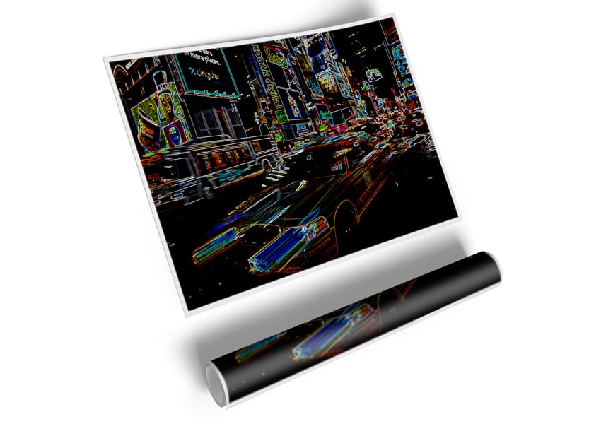 NYC Taxi Psychedelic Poster printed on high quality canvas paper, ready to display.