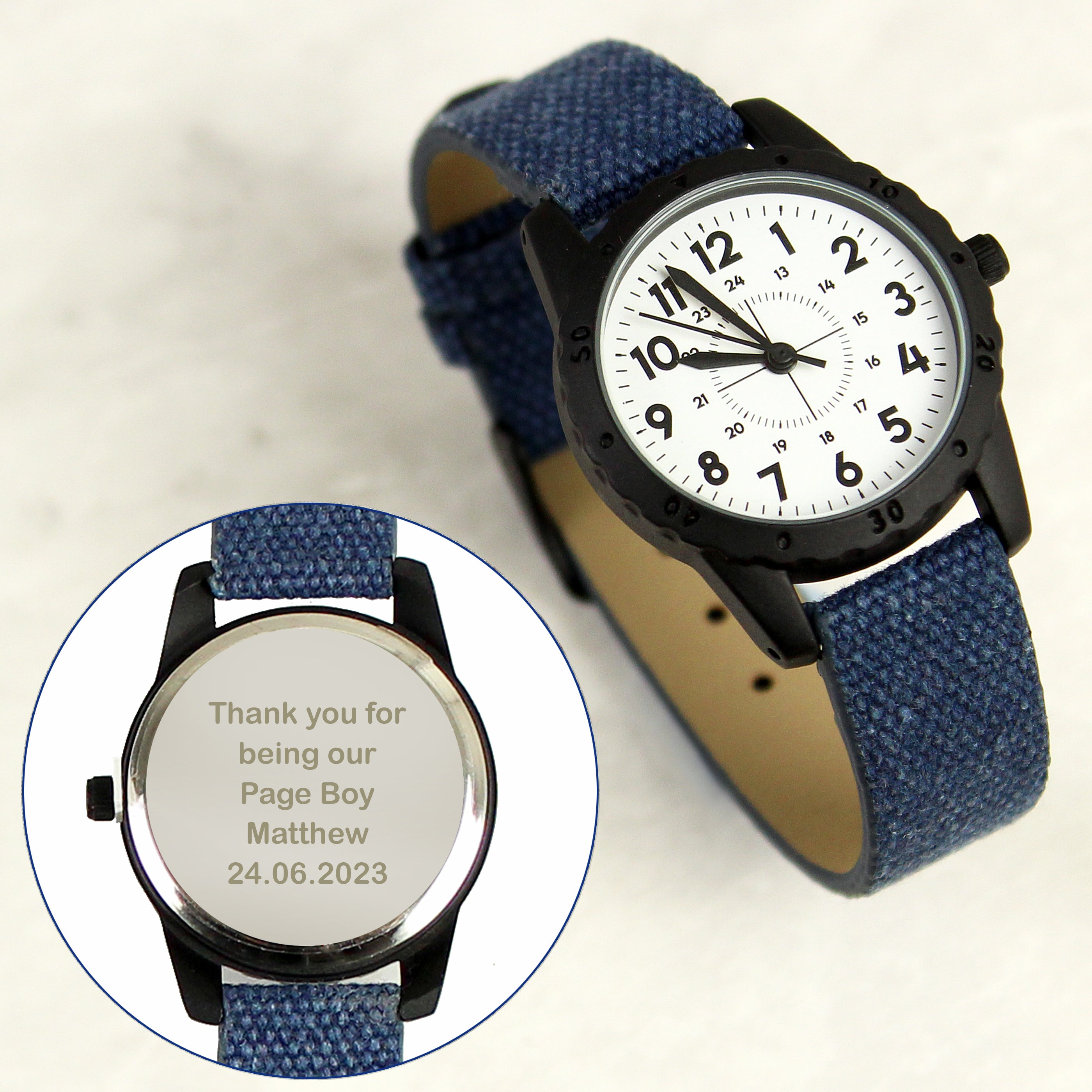 Title: Personalised Black with Blue Canvas Strap Boys Watch