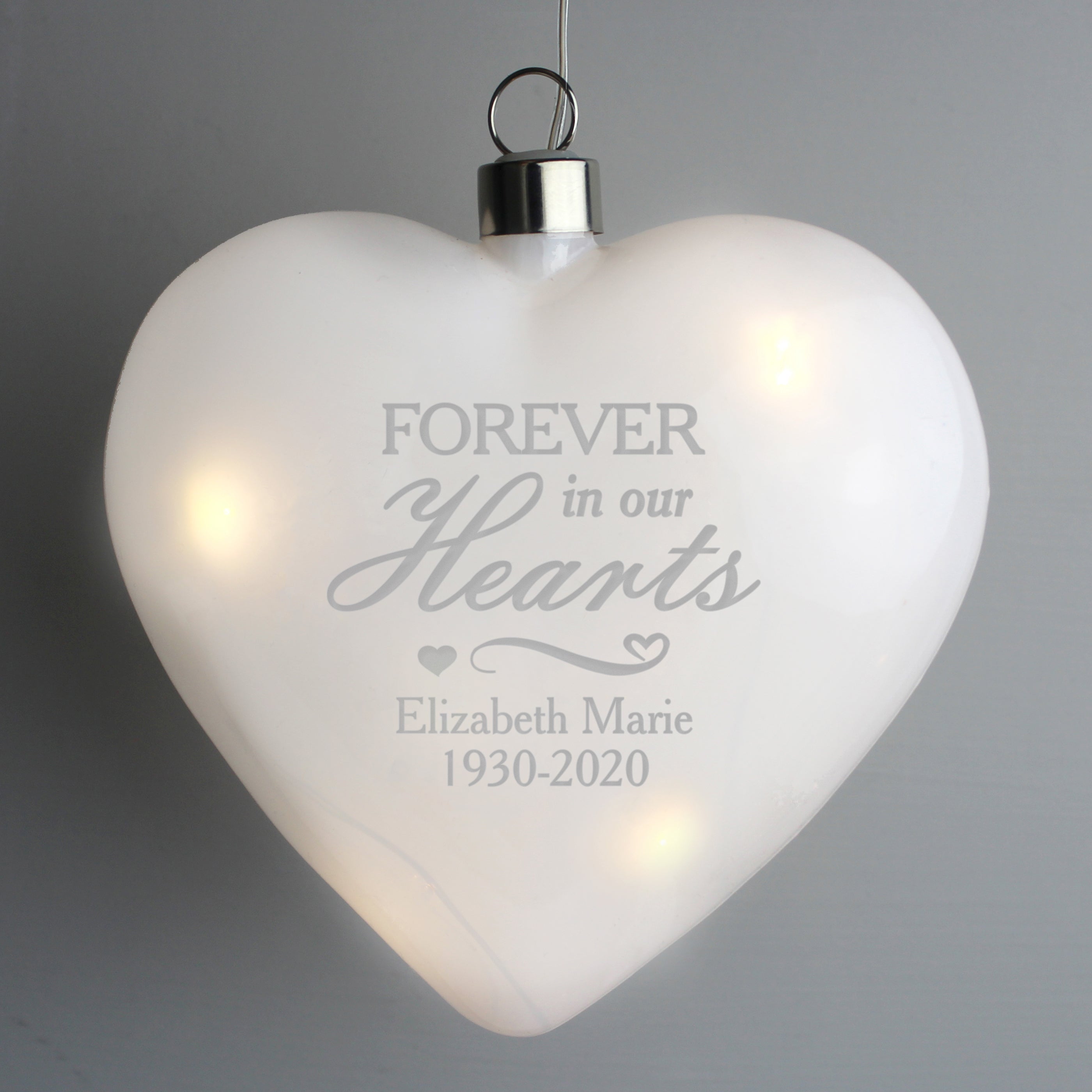 Title: Personalised Forever In Our Hearts LED Hanging Glass Heart
