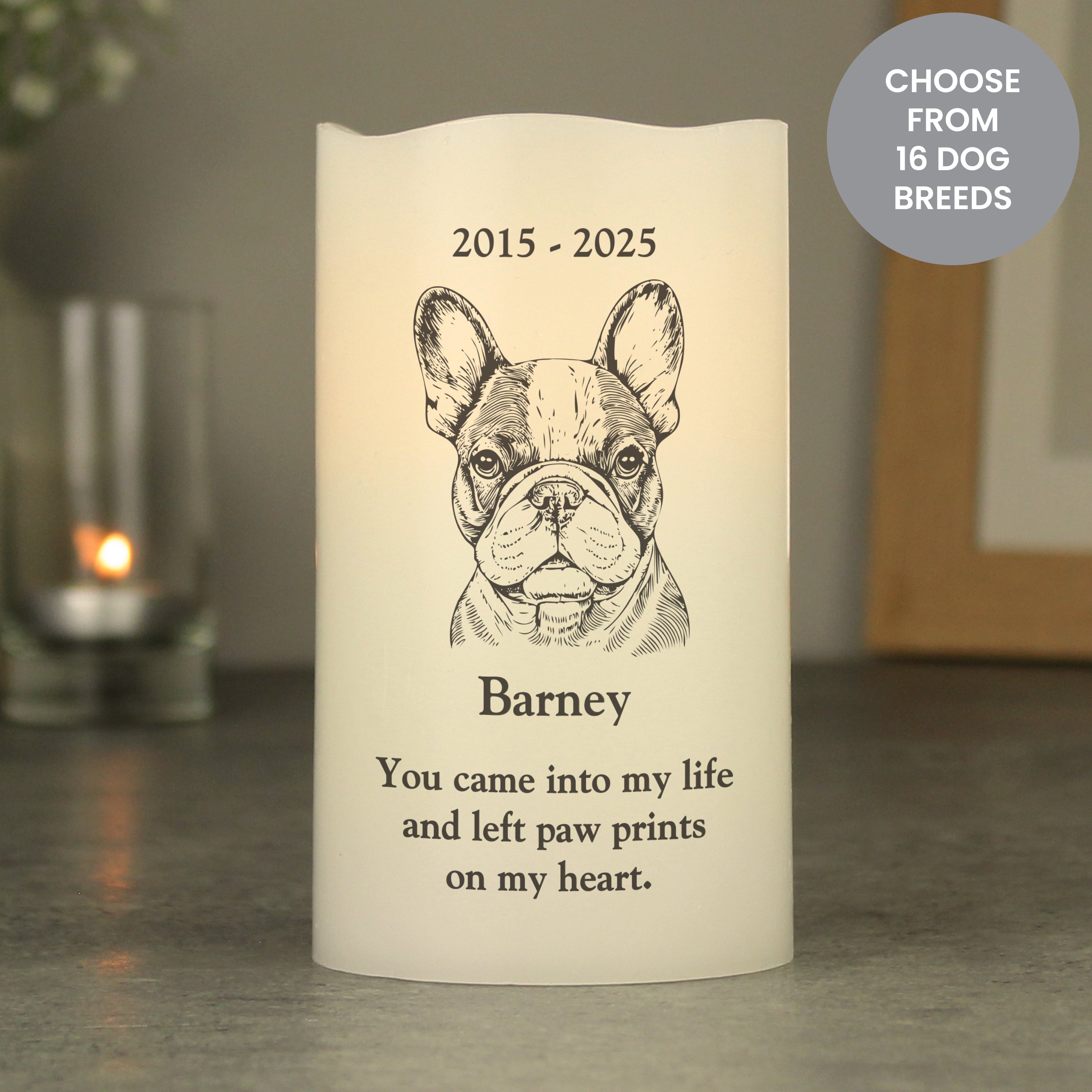 Honour the cherished memory of your beloved canine companion with our Personalised Dog Breed Memorial LED Candle.