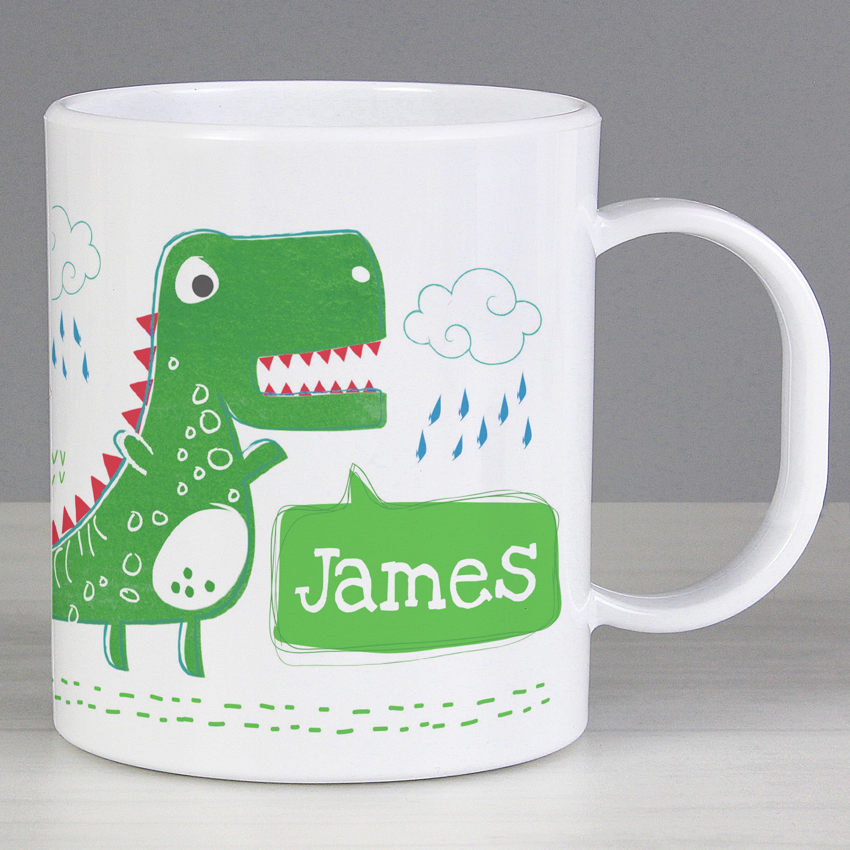 This practical shatter resistant Personalised Dinosaur Plastic Mug is perfect for little ones at dinner time!