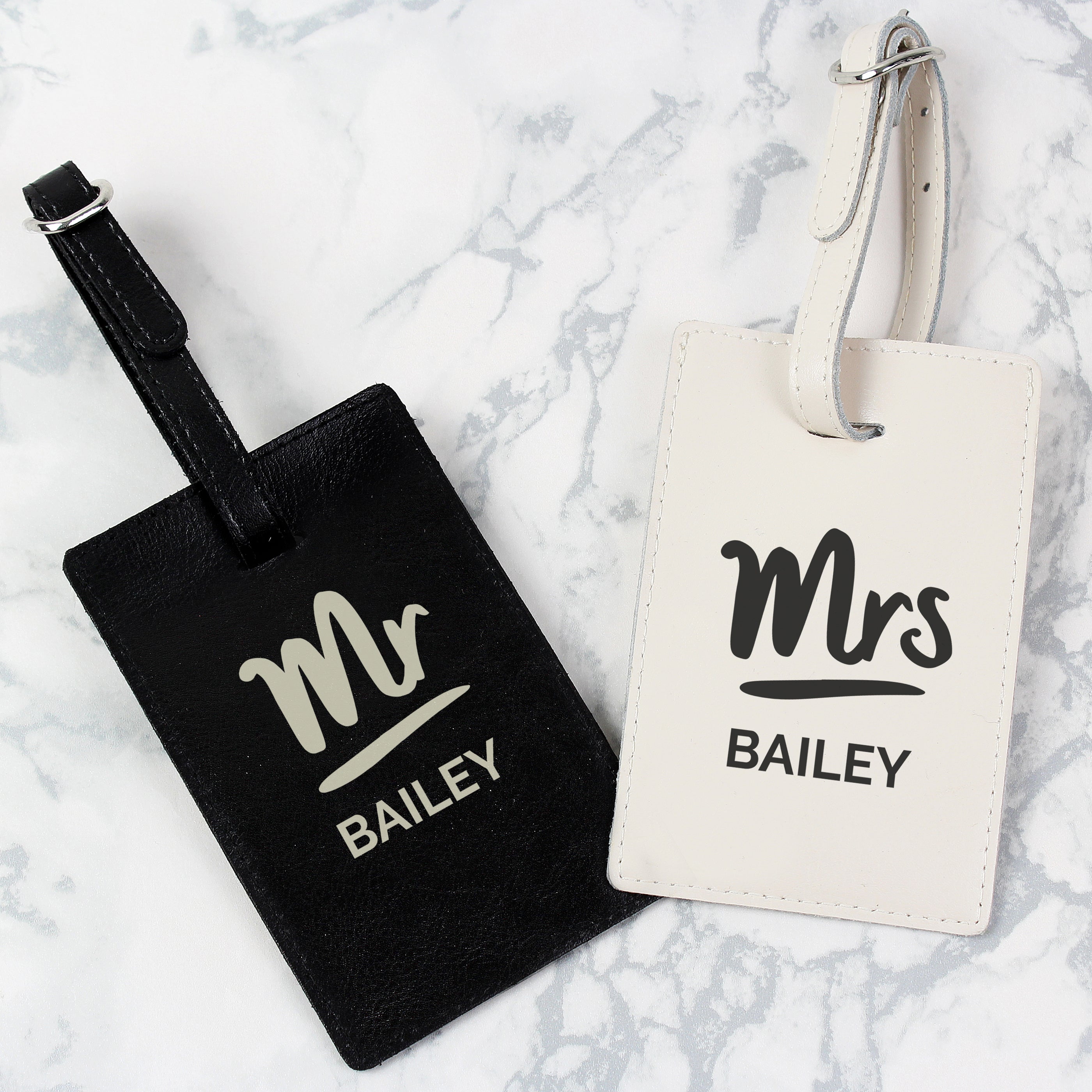 Title: Personalised Mr & Mrs Black & Cream Luggage Tag Set