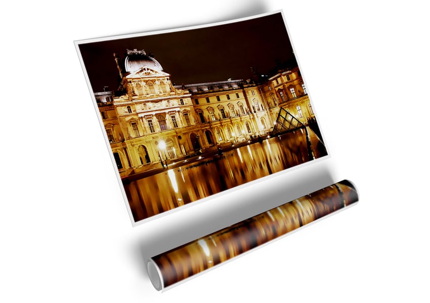 Paris The Louvre Lights At Night Poster printed on high quality canvas paper, ready to display.