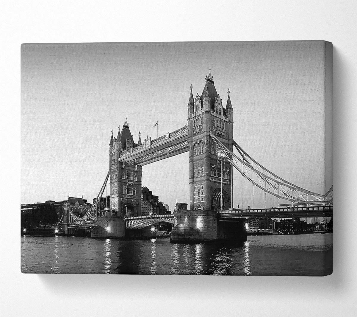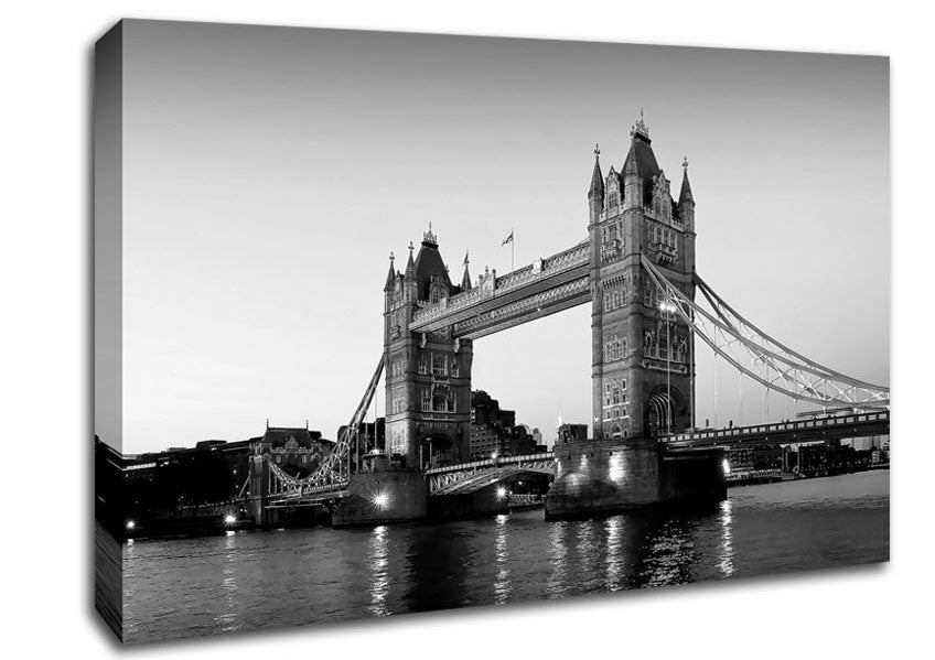 Tower Bridge Evening Canvas Print handmade in the UK. Stretched over a 2 inch thick wooden box frame, ready to hang on your wall.