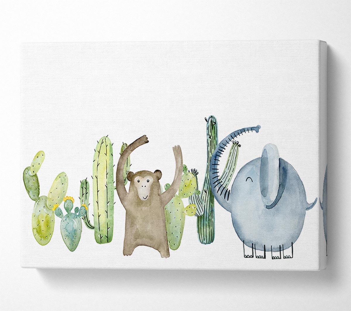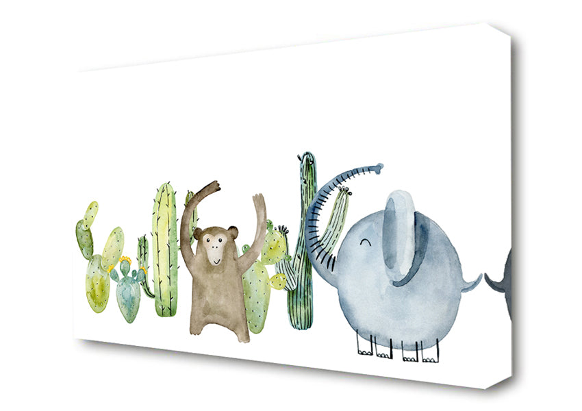 The Animal Party Canvas Print handmade in the UK. Stretched over a 2 inch thick wooden box frame, ready to hang on your wall.