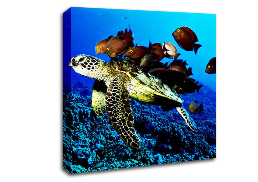 Turtle Love Square Canvas Print handmade in the UK. Stretched over a 2 inch thick wooden box frame, ready to hang on your wall.